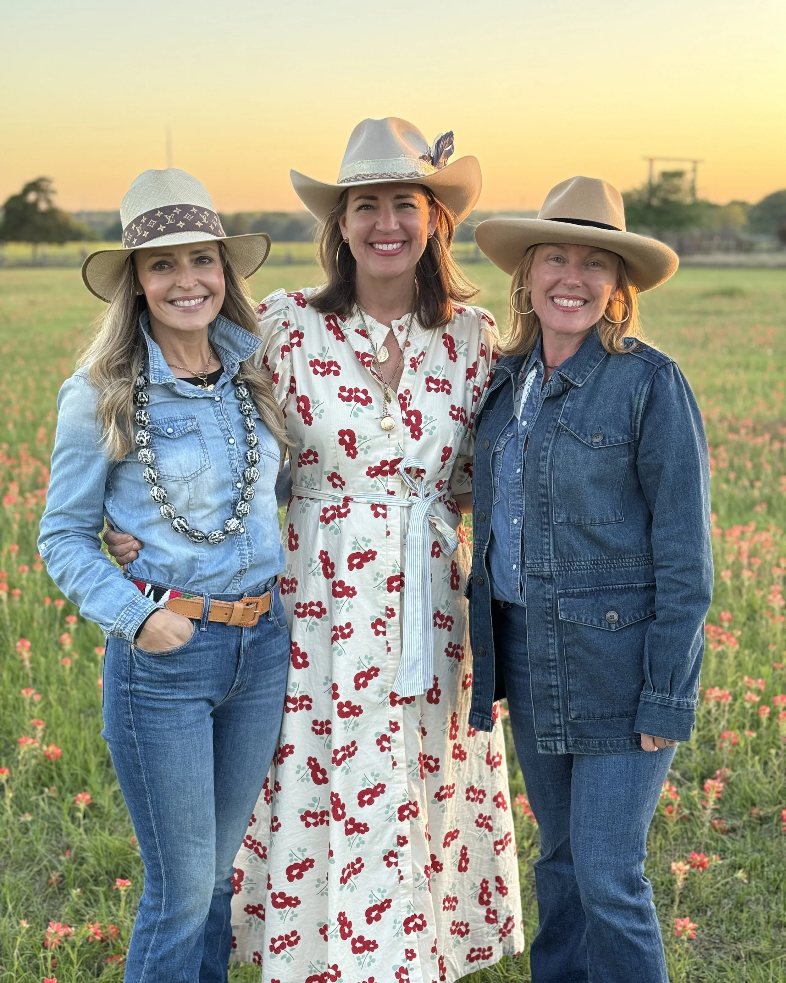 Kristin Light, Jill Oliver, and Katy Bader. Jill is wearing the midsummer straw hat.